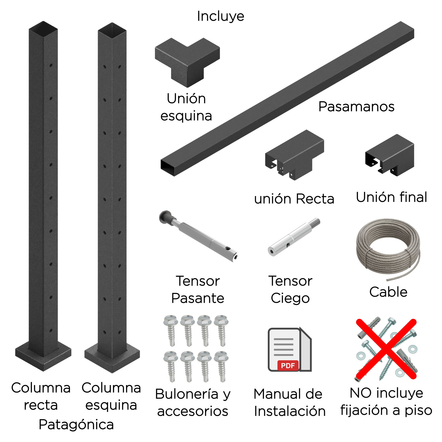 Diseñada para balcones o terrazas, la baranda Patagónica combina una estética minimalista con seguridad y durabilidad.