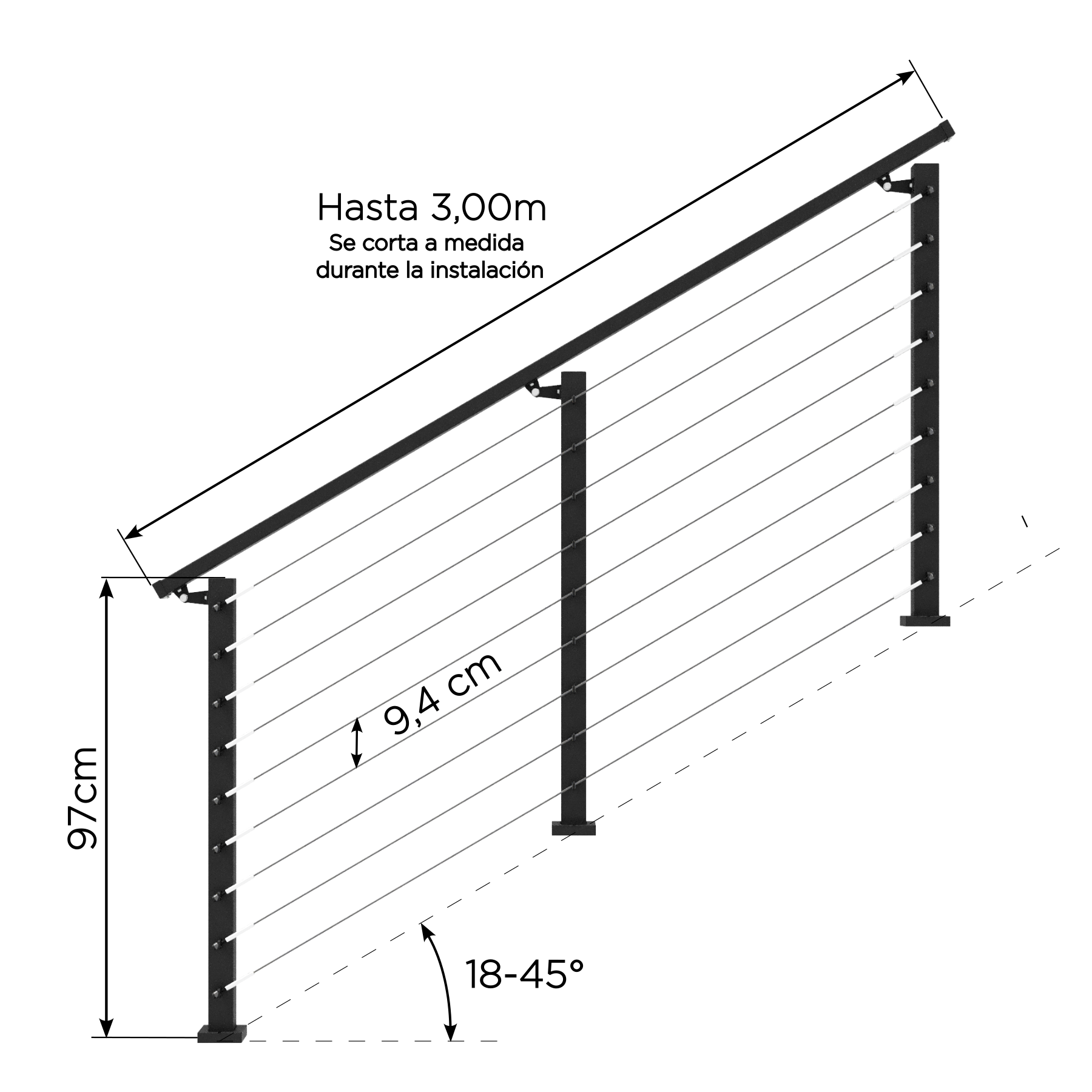 Este kit está diseñado específicamente para tramos rectos de escaleras, sin quiebres ni descansos.
