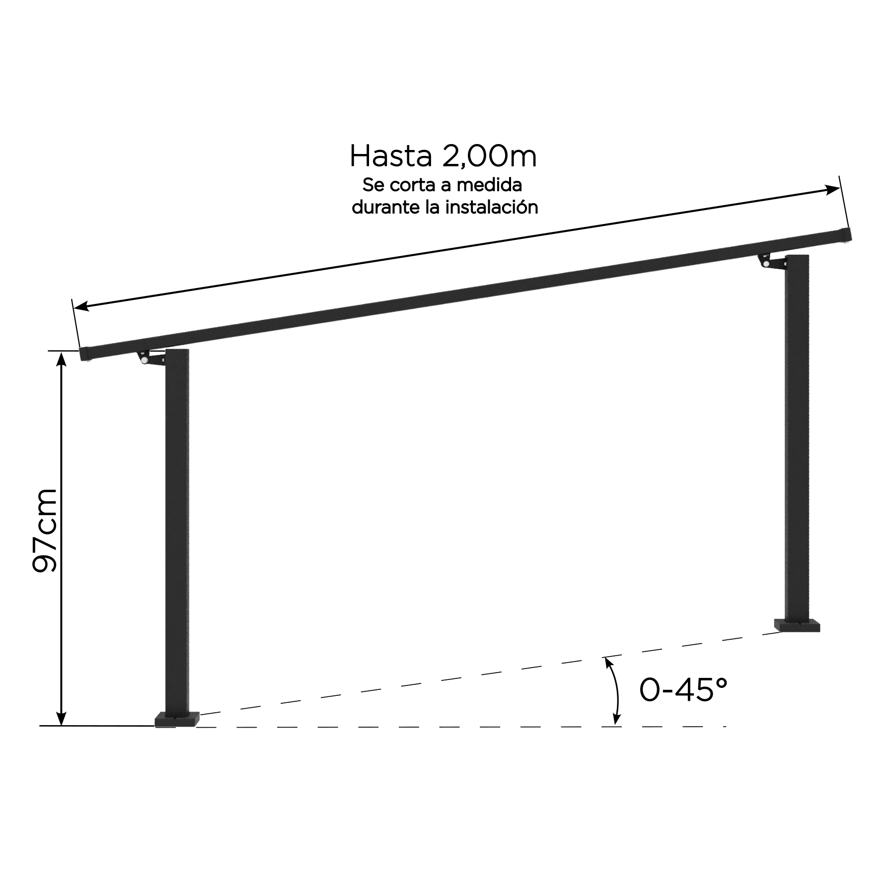 Versátil: Ajustable en obra hasta 2 m entre columnas cortando los pasamanos.
