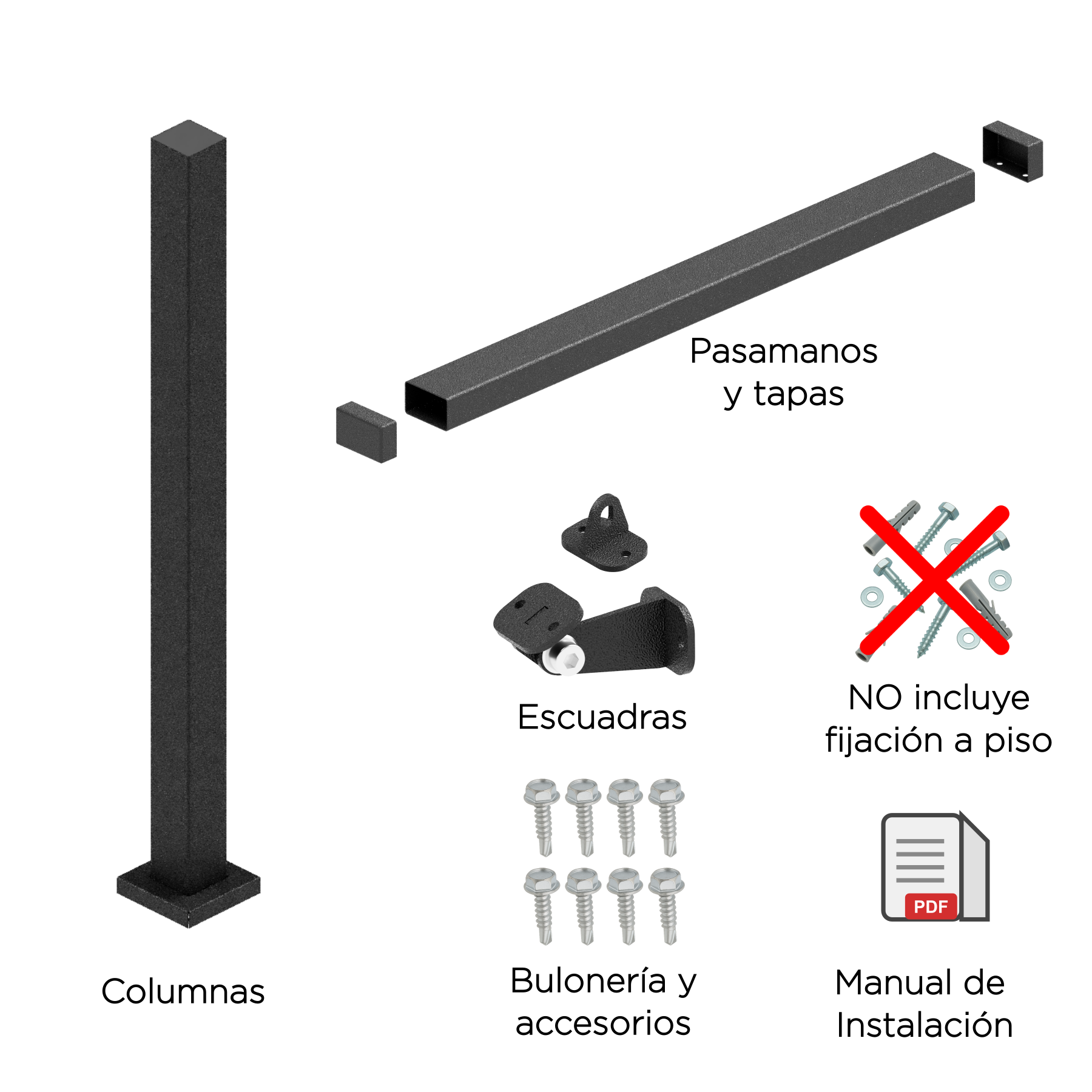 | Pasamanos | 1 x 1m | 1 x 2m | 1 x 3m | 1 x 4m |